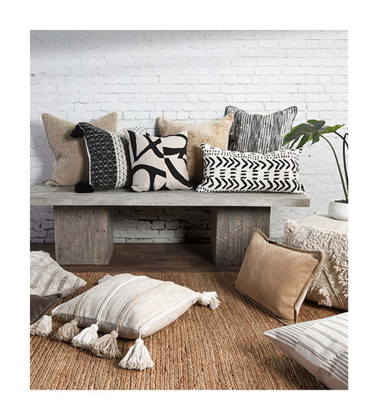Slip in solid wood furniture with dark finishes and brass accents. Pair with leather upholstered seating for a luxurious touch that softens the look of angular furniture. Pepper in deep gray and blue textiles for a subdued atmosphere. Textured boucle and plush shag rugs provide the final details that make your bespoke space come to life.