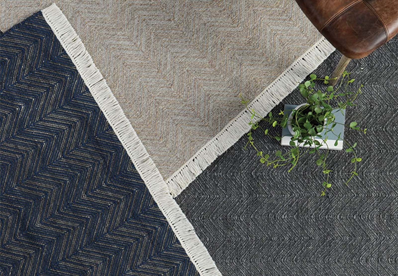 Rugs with subtle patterns in muted colorways complement reclaimed wood furniture. Moroccan-inspired designs and natural fiber rugs add a looser, more playful aesthetic.
